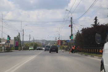 В Керчи, 18 мая, на Камыш-Бурунском шоссе люди красят заборы, которые ограждают тротуар от проезжей части. Сами рабочие находятся на дороге, соблюдая технику безопасности, - сообщает корреспондент Керчь.ФМ.