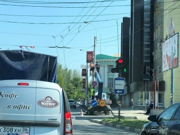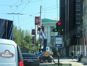 В Керчи на центральных улицах начали снимать праздничную атрибутику, которую вывесили к 9 мая, - передает Керчь.ФМ.  Работы шли на ул. Кирова.