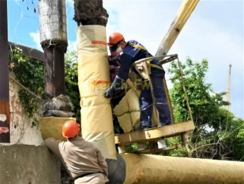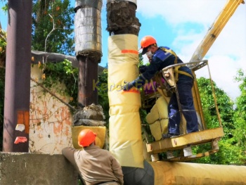 Как рассказали журналистам в планово-техническом отделе керченского филиала ГУП «Крымтеплокоммунэнерго», в соответствии с требованиями утеплитель наносят в два слоя - нижний из которого минвата, верхний РСТ (рулонный стеклопластик).