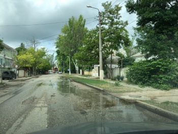 В Керчи на ул. Ульяновых несколько дней вдоль дороги течет вода