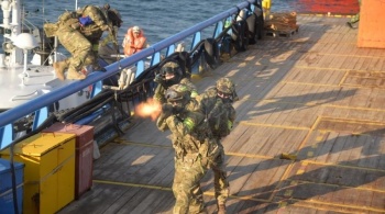 «По легенде учения в Пограничное управление ФСБ по Республике Крым поступила информация о том, что вооруженная группа, принадлежащая к одной из запрещенных на территории РФ организаций, совершила захват российского рыболовецкого судна. Траулер находился на внешнем рейде порта Темрюк в акватории Азовского моря», - говорится в сообщении.