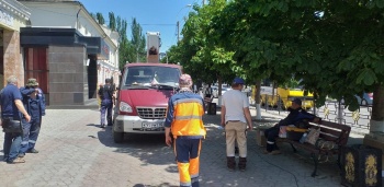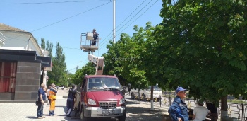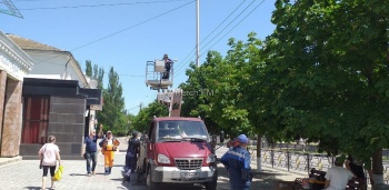 В Керчи началась подготовка к параду- на Кирова устанавливают оборудование