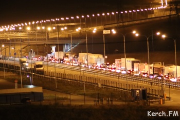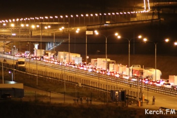На автоподходах к Крымскому мосту в Керчи десятки автомобилей ждут въезда в Крым. Фуры и легковые машины стоят в 2 ряда, - передает Керчь.ФМ.