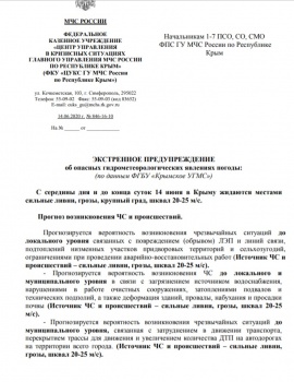 С середины дня и до конца суток 14 июня в Крыму ожидаются местами сильные ливни, грозы, крупный град, шквал 20-25 м/с. Прогноз возникновения ЧС и происшествий. Об этом сообщает ФКУ «ЦУКС ГУ МЧС Россиипо Республике Крым», - передает Керчь.ФМ.