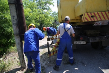 В Керчи 16 июня в переулке 2-й Нагорный бригада КРЭСа производит замену опор. Эта линия идет от РП-6. Потребителей заранее предупредили об отключении электроэнергии. Для энергетиков есть сложности к подъезду к опорам. Об этом Керчь.ФМ сообщил начальник КРЭСа Александр Забелин.
