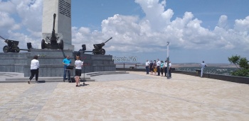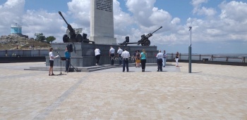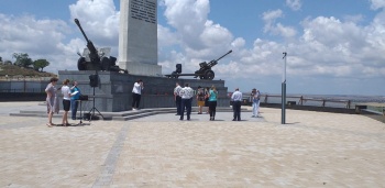 Цветы возложили к Обелиску Славы. На нем присутствовали представители власти Керчи. На территорию Обелиска до сих пор простых людей не пускают, обелиск огорожен забором в связи с продолжением ремонтных работ.