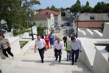 В Керчь 23 июня приехала делегация из Симферополя. В нее вошли председатель Госсовета РК Владимир Константинов, первый заместитель Председателя Государственного Совета РК Ефим Фикс, вице-премьер РК Игорь Михайличенко, министр культуры Республики Крым Арина Новосельская, представитель компании «Баварский дом» и администрация Керчи. Делегация отправилась проследить за ходом работ на Митридастких лестницах, - передаёт Керчь.ФМ