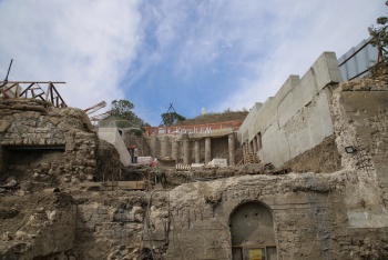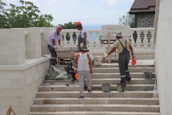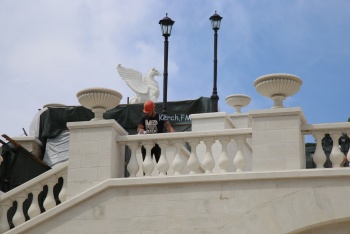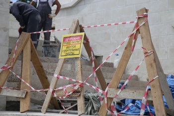 На Митридасткой лестнице провести работ еще остается достаточно много. Срок завершения работ 2022 год, но подрядчик планирует сдать объект раньше срока.