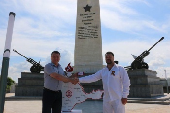 Глава администрации города Керчи Сергей Бороздин вложил горсть героической керченской земли в эмблемную нишу памятной стелы.