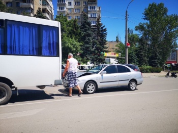 В Керчи 27 июня на улице Орджоникидзе произошла авария. Столкнулись маршрутное такси №28 и легковушка, - передает Керчь.ФМ.