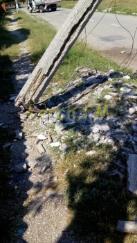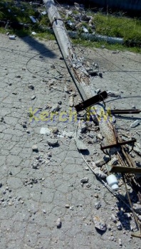 В Аджимушкае неизвестный трактор на Краснопартизанской снес опору уличного освещения Керчи. Опора зависла надо дорогой и угрожает безопасности керчан. К моменту приезда журналиста Керчь.ФМ ремонтная бригада уже работала на участке, убирая поврежденную опору.