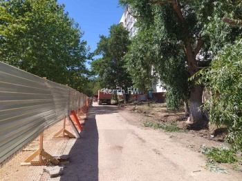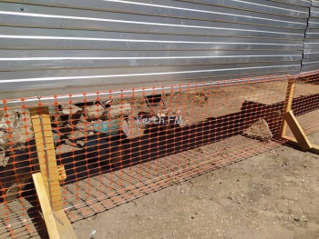 Место работ оградили забором. Уже завезли новую тротуарную плитку.