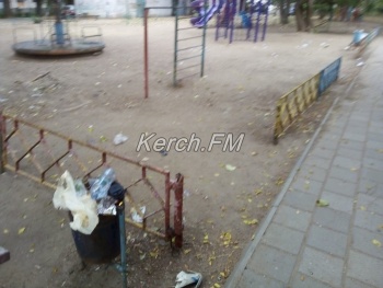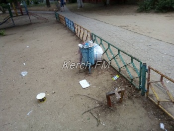 В редакцию Керчь.ФМ в очередной раз постоянные читатели присылают фотографии детской площадки около дома по Орджоникидзе, 115. В этот раз не только переполнены урны, мусор разбросан и по всей площадке.