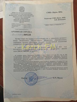 Ректор «ДГТУ» Бесарион Чохоевич Месхи в адрес редакции выслал архивную справку о том, что в документах архивного фонда федерального государственного бюджетного образовательного фонда ФГБОУ высшего образования «Донской государственный технический университет» Гусаров Денис Михайлович, не значится.