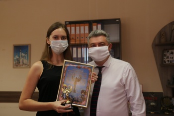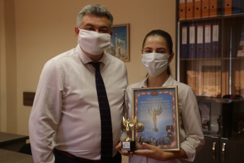 Каждого медалиста заместитель главы администрации Ренат Джапаров поздравил в индивидуальном порядке, вручив статуэтку богини победы Ники с надписью "Первому среди лучших" и благодарственное письмо.