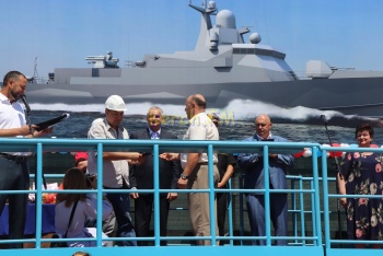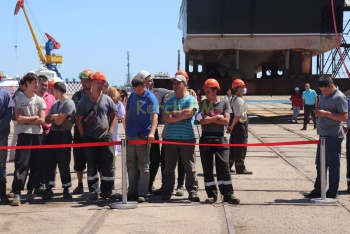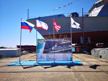 Это уже третий спуск корабля на воду в истории завода, отметил генеральный директор завода Игорь Обрубов.