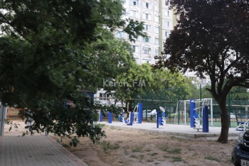 Спортивная и детская площадки, расположенные на придомовой территории многоквартирного дома по ул. Дмитрия Донского, 4 являются собственностью управления ФСБ России по Республике Крым и г. Севастополю и предназначены для жителей указанного многоквартирного дома», - было написано на прикрученном шурупами к металлической оградке спортплощадки.