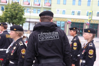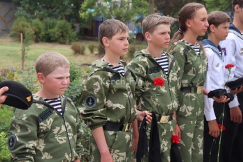 В это время в сквере у морвокзала прошел молебен у бюста адмирала Ушакова. Организации подростков в милитари-форме стояли в почетном карауле.