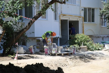 В Керчи продолжается реконструкция двора по Бульвару Пионеров, 3. Рабочие уже сняли бордюры, плитку и старый асфальт. Сегодня, 30 июля, производят покраску фасада, - передает Керчь.ФМ.