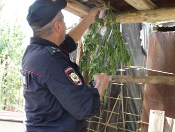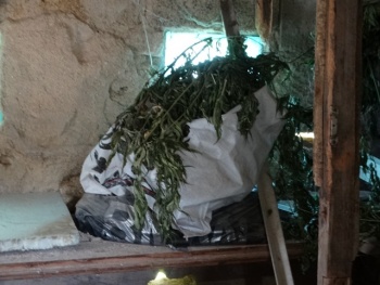 Еще одна находка ждала полицейских возле хозяйственной пристройки: там были обнаружены подвешенные снопы наркотического растения.