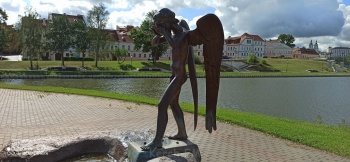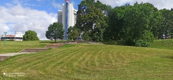 Минск прежде всего, поразил своей грандиозной архитектурой, огромные тротуары, широкие улицы и проспекты. Прохожие посоветовали пройтись по центру и сходить в музей великой отечественной войны, что мы с Анатолием и решили сделать. Мы вышли в центр города на огромную площадь, где себя чувствуешь лилипутом, все вокруг просто огроменное. По дороге, я купил газету с местными новостями и узнал, что в Беларуси скоро выборы, часть кандидатов в президенты или недопущены или сидят под следствием, из-за незадекларированных доходов, имущества и т.д скрытых при подаче заявки на выборы. Причем в Беларуси так и остались все те же названия, что и при СССР, КГБ, милиция. Причем я думаю белорусам забавно читать русские названия и наоборот русским белоруские, т. к у них милиция - это мiлiцыя, выборы-выбАры и так во всем языке, все вроде и похоже и не похоже на русский или украинский языки. Сам очень чистый, в парках есть туалеты, люди очень приветливые и доброжелательные.
