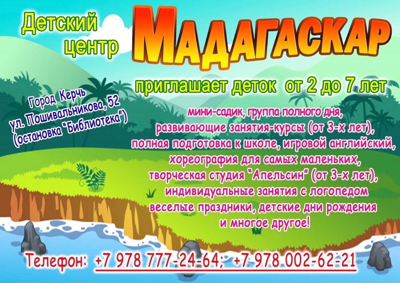Детский центр «Мадагаскар» приглашает детей от 2 до 7 лет!