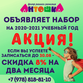 Центр "Антошка" объявляет набор на новый 2019-2020 учебный год
