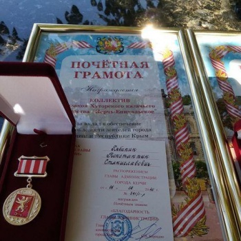 «В сквере Славы состоялось награждение членов Хуторского казачьего общества «Керчь Еникальское», Хуторского казачьего общества «Донское», добровольной народной дружины «Керченская» и бойцов «Полка народного ополчения Республики Крым» за помощь городу и силам правопорядка в период пандемии и недопущением распространения новой коронавирусной инфекции covid 2019», - говорится в сообщении