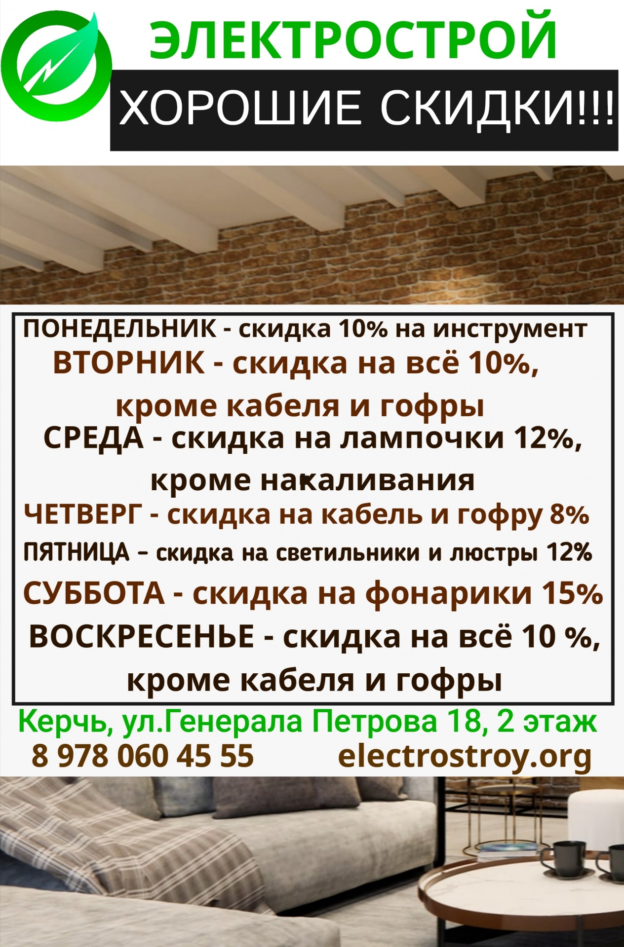 Вторник - скидки на все 10% (кроме гофры и кабеля)