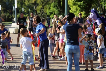 У «Крымского моста» расположилась сцена, где выступают юные артисты коллективов города. У детской площадки аниматоры подготовили праздничную программу.