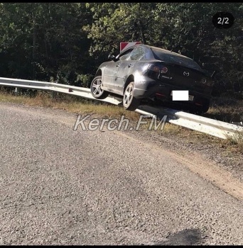Легковушка «зависла» на отбойнике на крымском серпантине