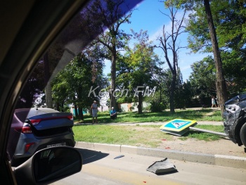 В Керчи днем 13 сентября, около остановки «Парковая» на пешеходном переходе произошла авария. Столкнулись «БМВ» и «КИА». Также один из автомобилей оказался на обочине и снес дорожный знак, - передает Керчь.ФМ.