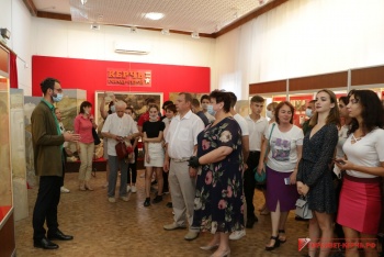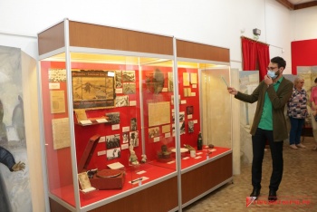 Заместитель генерального директора ВКИКМЗ Николай Гусаков открыл экспозицию и отметил, что выставка познакомит керчан с военной историей города, расскажет о мужестве воинов, освобождавших Керчь, о стойкости жителей, переживших две оккупации, но не покорившихся врагу.