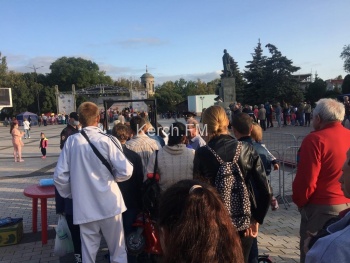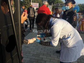 В Керчи 19 сентября на площади Ленина проходит фестиваль «Дружба народов». НА огражденную территорию к сцене пускают после измерения температуры, всем раздают бесплатно маски. Желающих пройти к сцене мало, - передает Керчь.ФМ