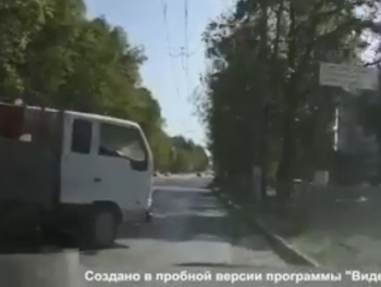 В Керчи 21 сентября на ул. Генерала Петрова произошла авария с участием грузового автомобиля и легковушки. В результате ДТП, груз упал на легковое авто.