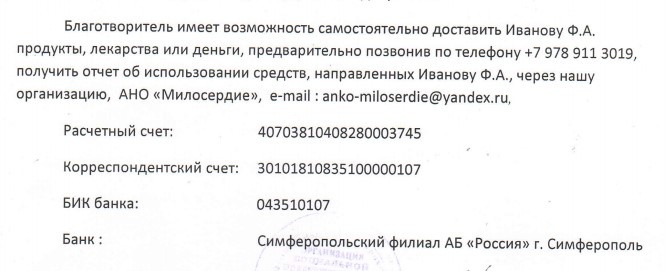 Неравнодушных просят помочь Иванову Ф. лекарствами, продуктами и средствами для оформления документов.