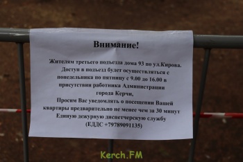 Аварийный подъезд по Кирова, 93 в Керчи охраняет круглосуточно Росгвардия. С обеих сторон доступ к подъезду ограничен металлическими секциями. Жители подъезда могут попасть в квартиры, но предварительно предупредив и с сопровождением, - передает Керчь.ФМ.