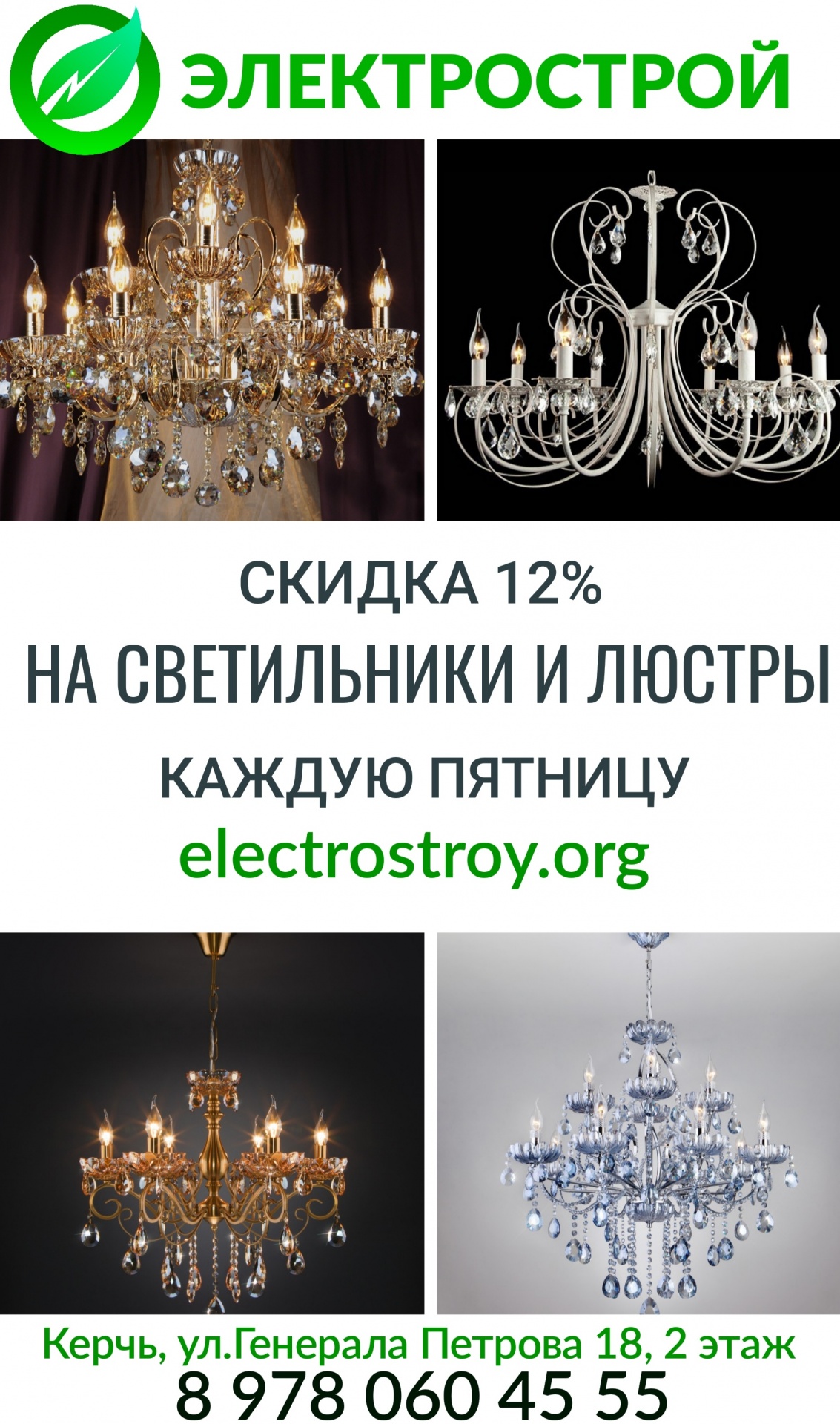 Магазин «Электрострой» - скидка каждую пятницу 12 % на люстры и светильники!
