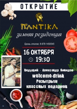 Еще не знаешь чем занять вечер пятницы? Мы все придумали! Ждем тебя на открытии нового кафе «Pantika» 16 октября в 19:30.