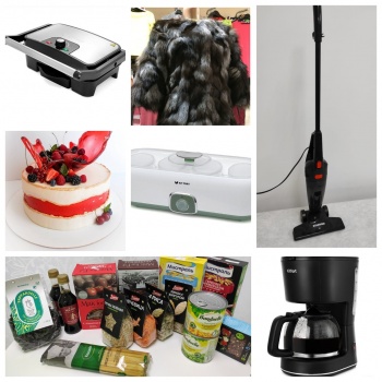 - бытовая техника (вертикальный пылесос, электрогриль, кофемашина, йогуртница, массажер- миостимулятор),