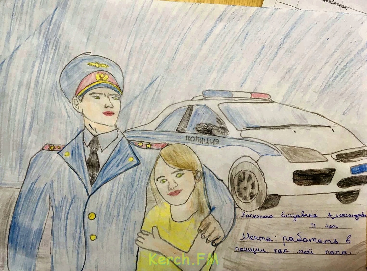 Победителем первого этапа конкурса детского рисунка «Мои родители работают в полиции» признана работа Елизаветы Копытиной, ученицы 5 класса, школы №1 г. Керчи. Папа Елизаветы, подполковник внутренней службы Александр Копытин, возглавляет штабное подразделение УМВД России по г.Керчи.