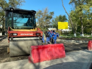 Для укладки асфальта перекрыли участок дороги. Напомним, ремонт дороги здесь начали в начале сентября