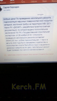 Дети легкой атлетикой в холодное время года занимаются в зимнем манеже на стадионе им 50-Летия Октября под «бомбежкой» из штукатурки, вдоль гнилых труб и радиаторов отопления. Фотографии и письмо прислали в редакцию Керчь.ФМ родители юных спортсменов.