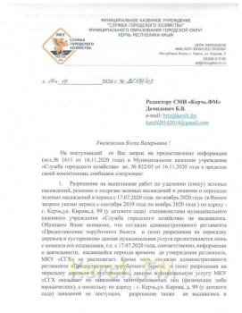 Редакция подала информационный запрос по поводу законности вырубки тополей рядом с детским садом и жилыми домами. Как оказалось, в период с 17 июля по настоящее время никто разрешения на вырубку деревьев по указанному адресу не брал. Соответственно, никакой компенсации за вред, причиненный уничтожением деревьев не поступало. Такой ответ дал директор МКУ «СГХ» Александр Лонюк.