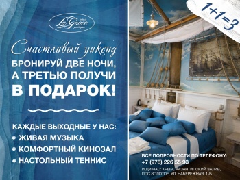 А приятный бонус, что при бронировании двух ночей в отеле La Grace - третью получай в ПОДАРОК! Отдых на двоих всего от 6 180 рублей на ТРИ ночи …