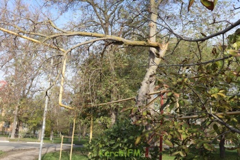 На Казакова в Керчи сухое дерево упало на газовую трубу