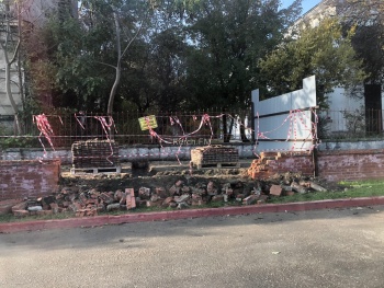 В понедельник 30 ноября рабочие приступили к демонтажу кирпичной подпорной стены.