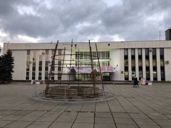 В Керчи 1 декабря, у здания  ДК «Корабел» в Аршинцево начали собирать каркас новогодней елки, - передает Керчь.ФМ.  Основание будущей елки усилили бетонными блоками.