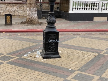 Сильный ветер разбил плафон на фонарном столбе в Керчи