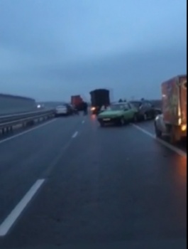 Авария произошла сегодня утром. Очевидцы происшествия опубликовали несколько видеороликов с места ДТП. На кадрах видно, что место аварии растянуто на несколько десятков метров.